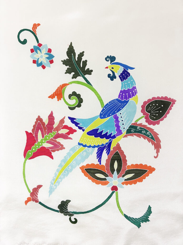 Yuzen Iro-Sashi experience: silk scarf “Tori-Sarasa” “Kissyo-zukushi”